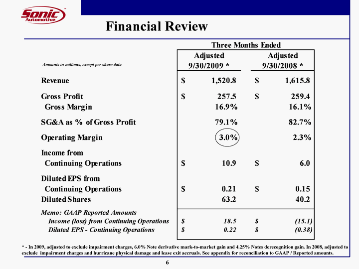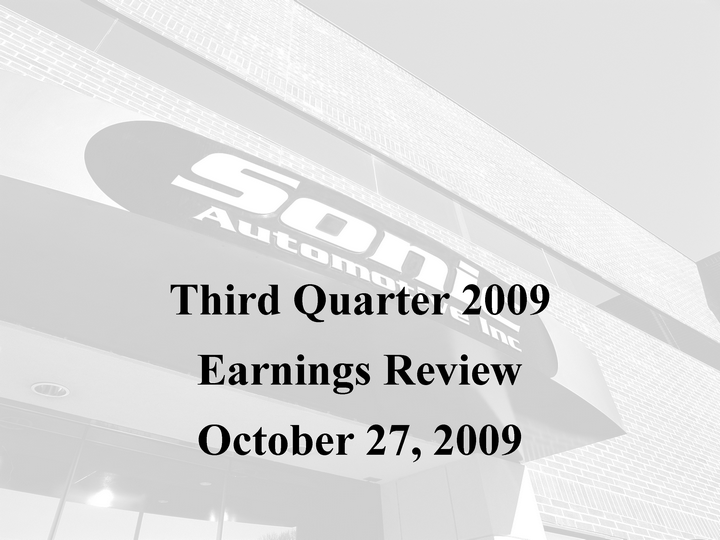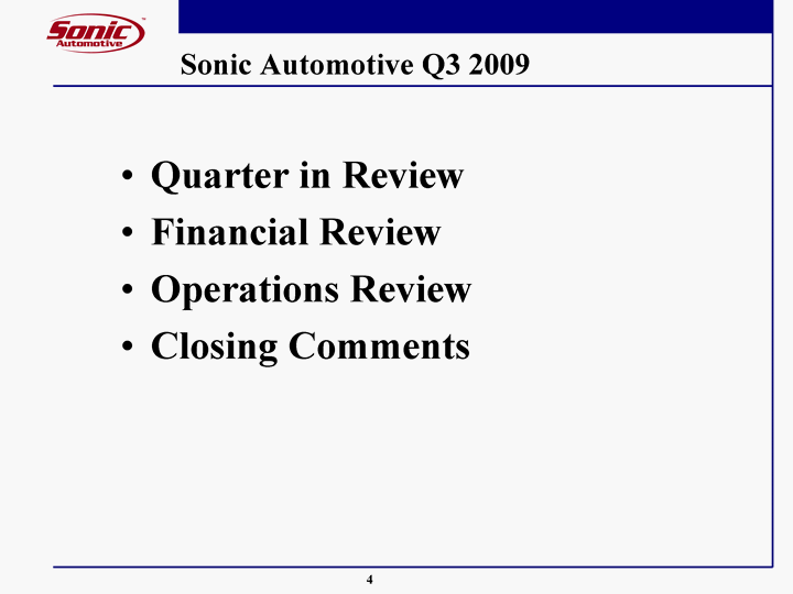 | Sonic Automotive Q3 2009 Quarter in Review Financial Review Operations Review Closing Comments |
