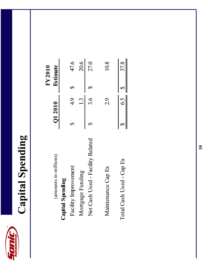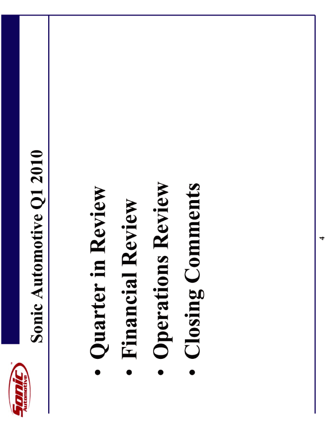 | Sonic Automotive Q1 2010 Quarter in Review Financial Review Operations Review Closing Comments |
