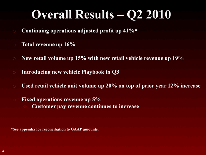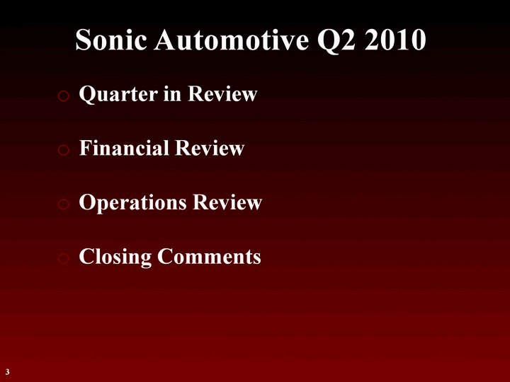 | 3 Sonic Automotive Q2 2010 Quarter in Review Financial Review Operations Review Closing Comments |