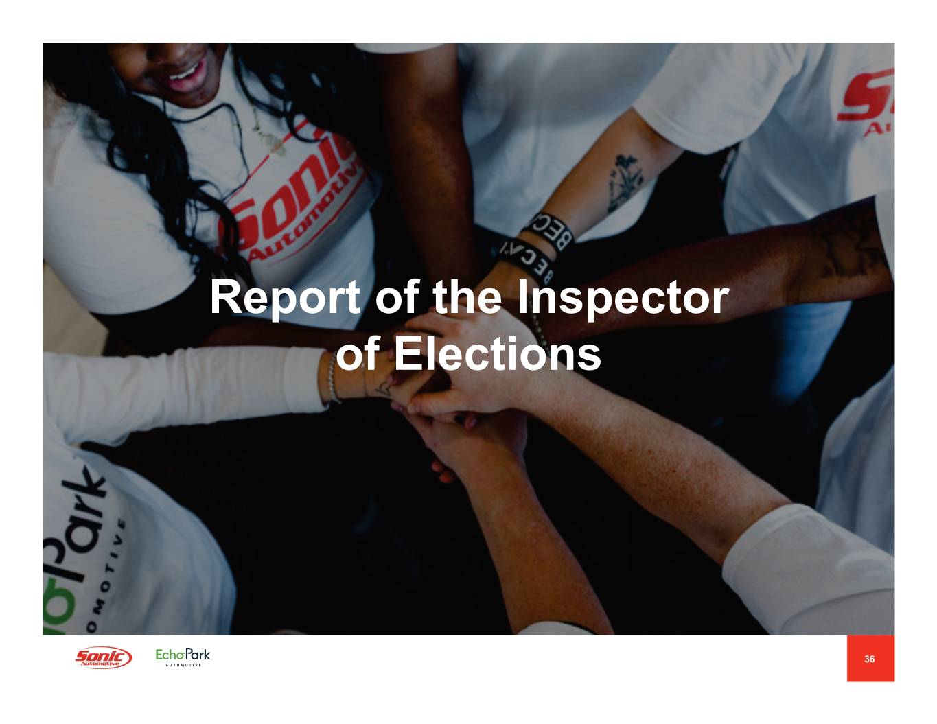 Outlook – Sonic Automotive Franchised Dealerships Fixed Operations Gross $ $70,000 Above Forecast Above Forecast Aug Through Dec Jan & Feb $60,000 $50,000 Back To Original Forecast in Aug/Sept $40,000 (In Thousands) $30,000 $20,000 $10,000 $- Jan Feb Mar Apr May Jun Jul Aug Sep Oct Nov Dec Original Forecast COVID-19 Forecast Due To Uncertainty Related To The COVID-19 Pandemic And The Resulting Economic Impact, Actual Results May Differ Materially From Management’s Forecast 35