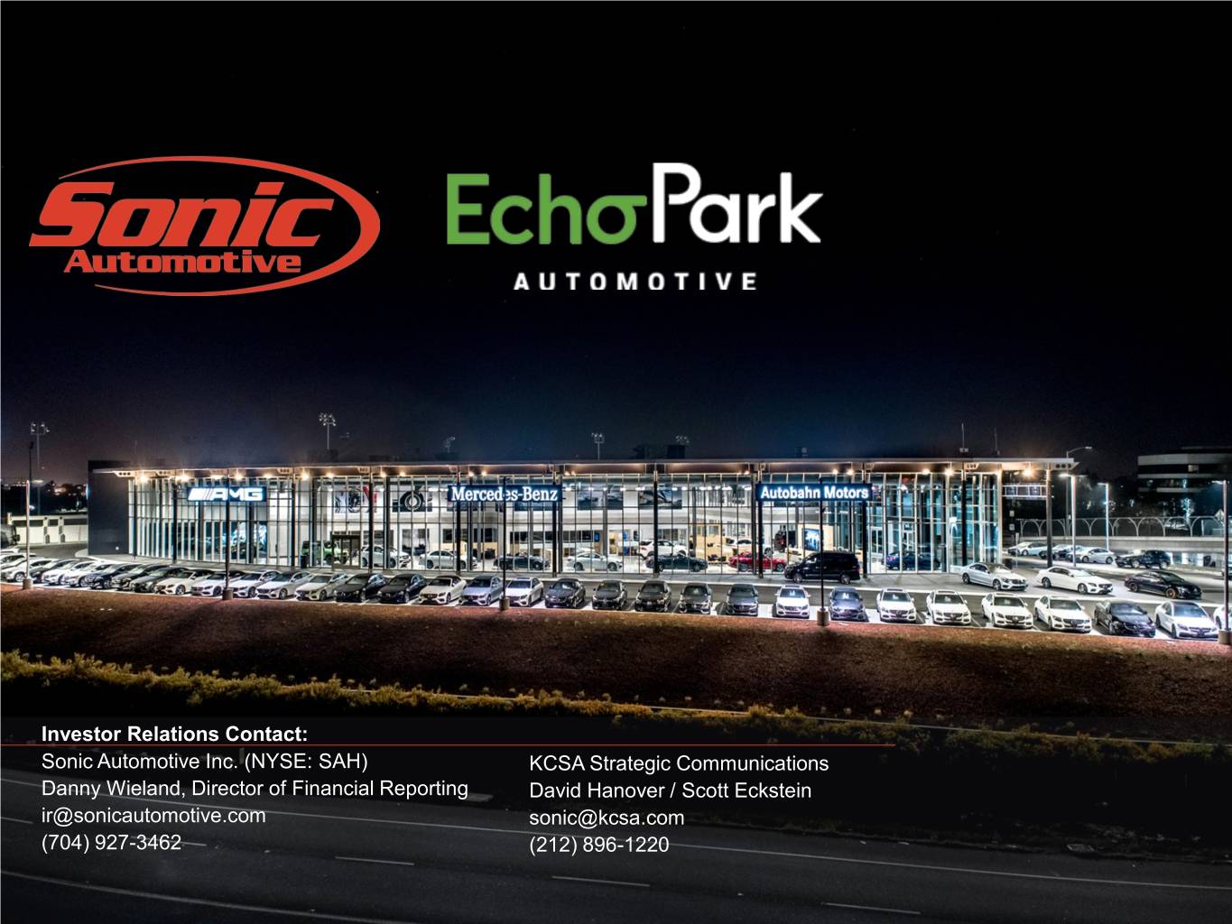 Investor Relations Contact: Sonic Automotive Inc. (NYSE: SAH) KCSA Strategic Communications Danny Wieland, Director of Financial Reporting David Hanover / Scott Eckstein ir@sonicautomotive.com sonic@kcsa.com (704) 927-3462 (212) 896-1220