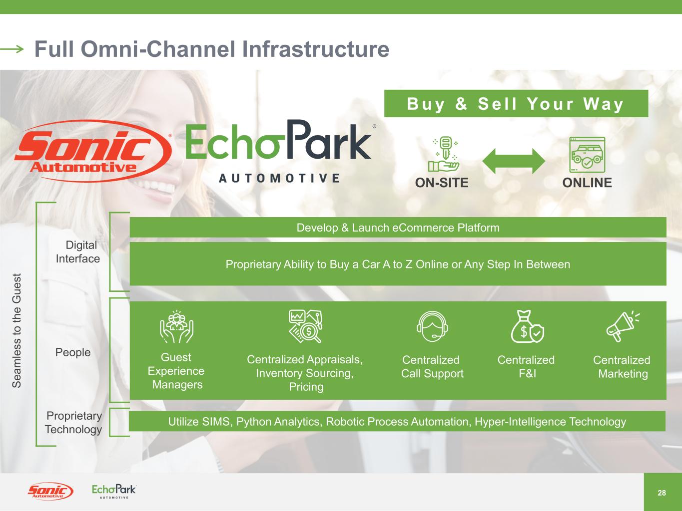 28 Full Omni-Channel Infrastructure Guest Experience Managers Centralized Appraisals, Inventory Sourcing, Pricing Centralized Call Support Centralized F&I Digital Interface People Proprietary Technology Centralized Marketing Develop & Launch eCommerce Platform B u y & S e l l Yo u r Wa y Proprietary Ability to Buy a Car A to Z Online or Any Step In Between Utilize SIMS, Python Analytics, Robotic Process Automation, Hyper-Intelligence Technology ON-SITE ONLINE S ea m le ss to th e G ue st