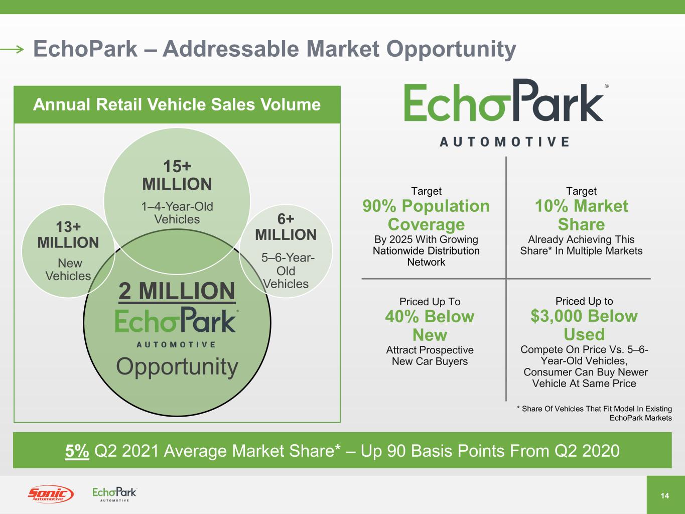 13 EchoPark – Developing Nationwide Distribution Network 25% Population Coverage By End Of 2021 90% Population Coverage By 2025 Note: Future locations and population coverage are based on projections. Actual results may differ. See “Forward-Looking Statements.” Existing Retail Hub Existing Delivery Center Delivery Center Coverage Area Future Market Opportunities
