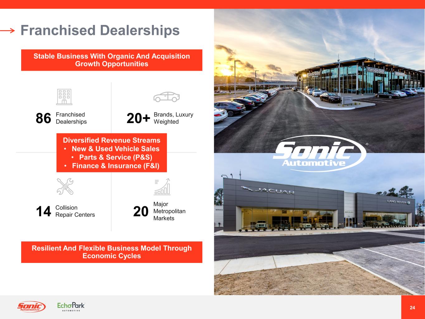 24 New & Used Vehicle Sales Parts & Service (P&S) Finance & Insurance (F&I) ® Franchised Dealerships Franchised Dealerships86 Brands, Luxury Weighted20+ Diversified Revenue Streams • New & Used Vehicle Sales • Parts Service (P S) • Finance & Insurance (F&I) Collision Repair Centers14 20 Major Metropolitan Markets Stable Business With Organic And Acquisition Growth Opportunities Resilient And Flexible Business Model Through Economic Cycles