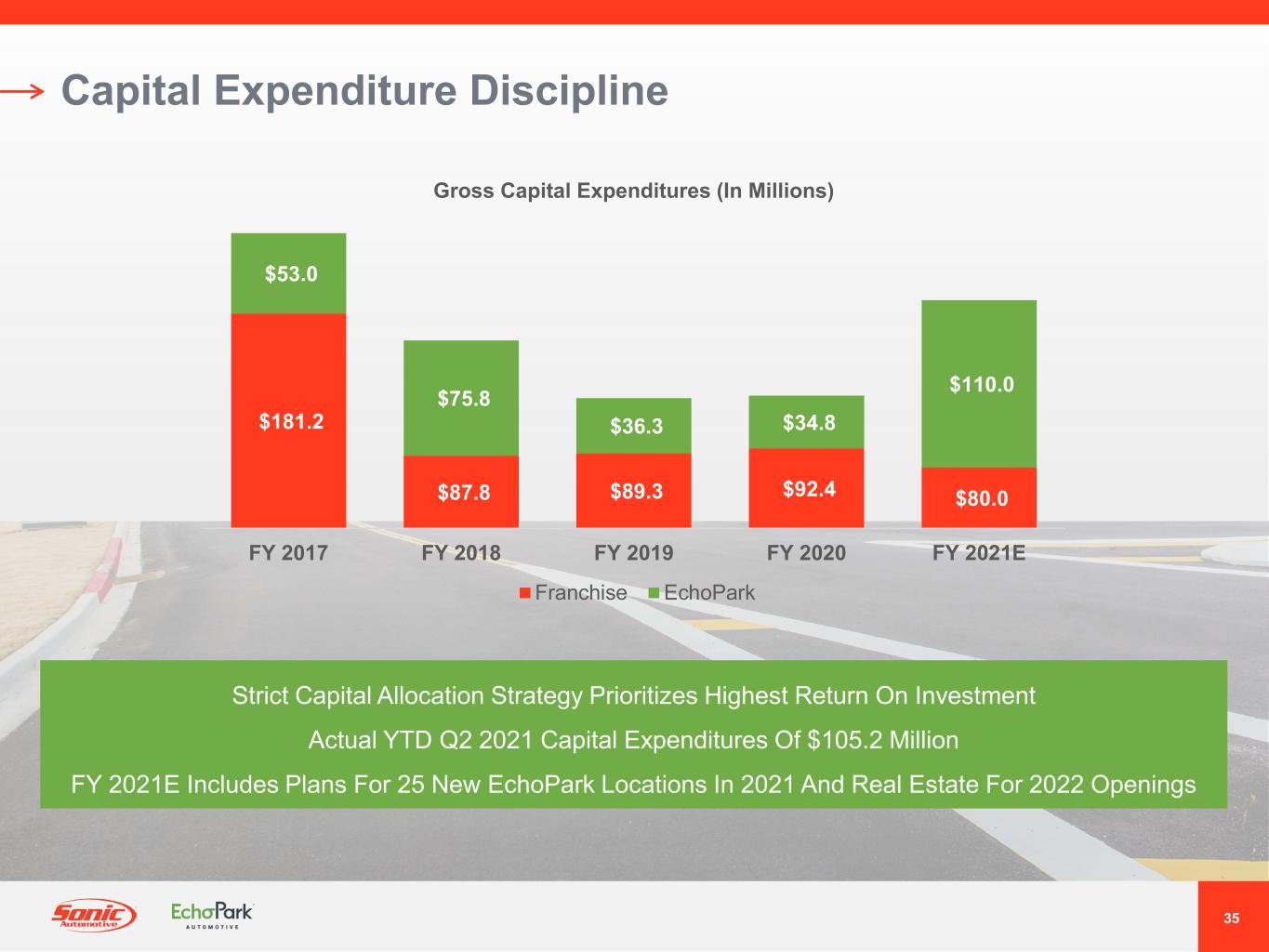 34 Strong Balance Sheet And Liquidity June 30,2021 December 31,2020 (In Millions) Cash and cash equivalents 239.6$ 170.3$ Availability under the 2021 Revolving Credit Facility(1) 224.3 214.7 Availability under the 2019 Mortgage Facility 16.7 11.2 Availability under the 2020 Line Of Credit Facility 54.1 57.0 Floor plan deposit balance 75.0 73.2 Total available liquidity resources 609.7$ 526.4$ Covenant Requirement* June 30,2021 December 31,2020 Liquidity ratio >= 1.05 1.19 1.18 Fixed charge coverage ratio >= 1.20 2.21 2.07 Total lease adjusted leverage ratio <= 5.75 1.34 2.79 Net debt to Adjusted EBITDA ratio(2) 0.69 1.29 * As Defined In The 2021 Revolving Credit Facility and 2019 Mortgage Facility (1) Balance As Of December 31, 2020 Was Under The 2016 Revolving Credit Facility (2) Refer To Appendix For Calculation And Reconciliation of Adjusted EBITDA (A Non-GAAP Measure) and Net Debt To Adjusted EBITDA Ratio (A Non-GAAP Measure)