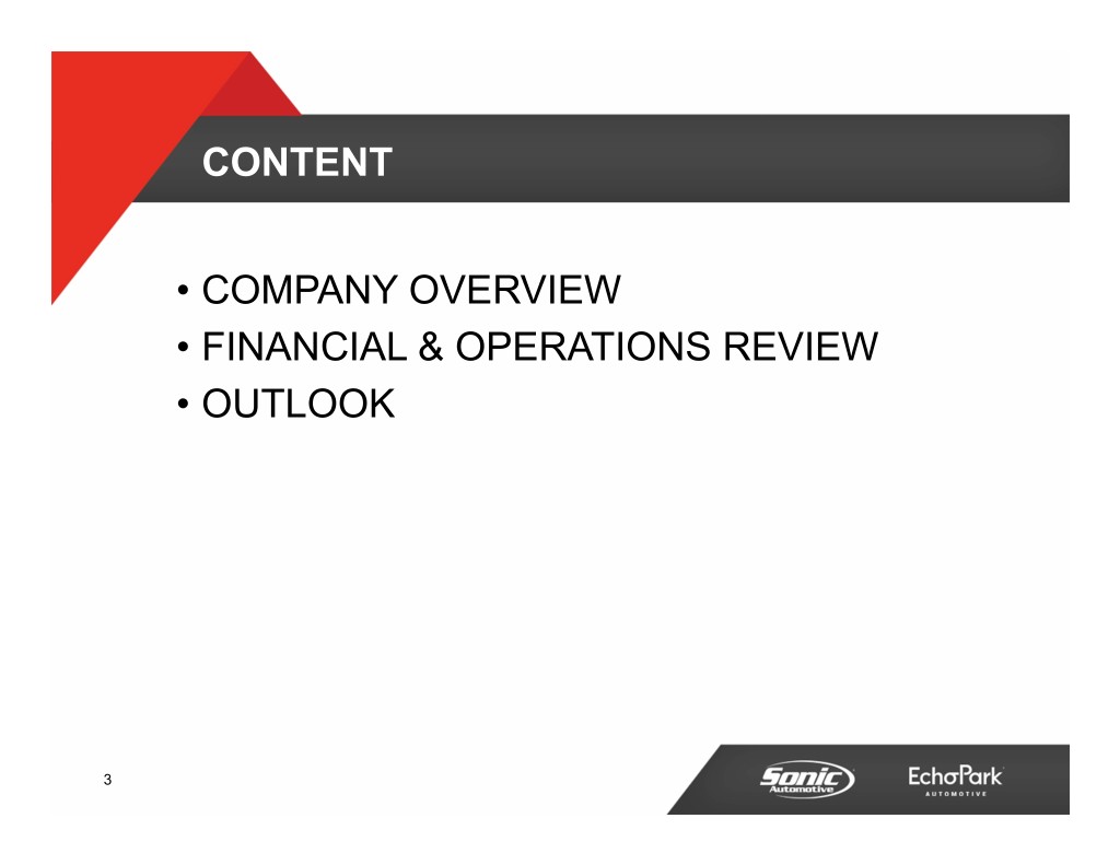 CONTENT • COMPANY OVERVIEW • FINANCIAL & OPERATIONS REVIEW • OUTLOOK 3