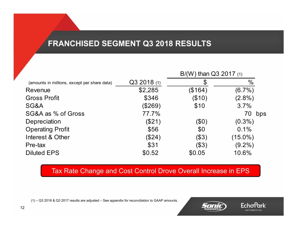 Q3 2018 FINANCIAL REVIEW FRANCHISED SEGMENT 11