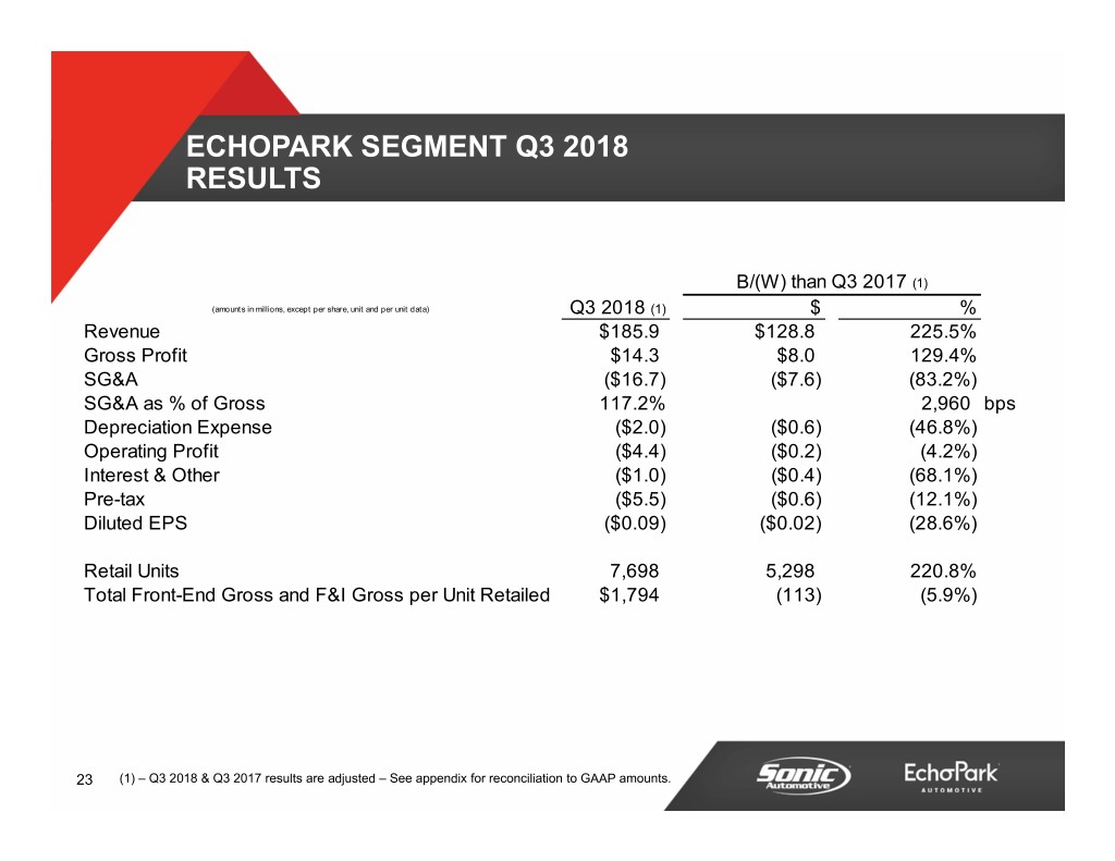 Q3 2018 FINANCIAL REVIEW ECHOPARK SEGMENT 22